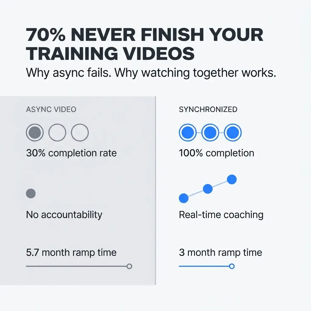 Asynchronous video training operates on a flawed assumption: that learning happens when someone watches alone, at their own pace, without accountability.